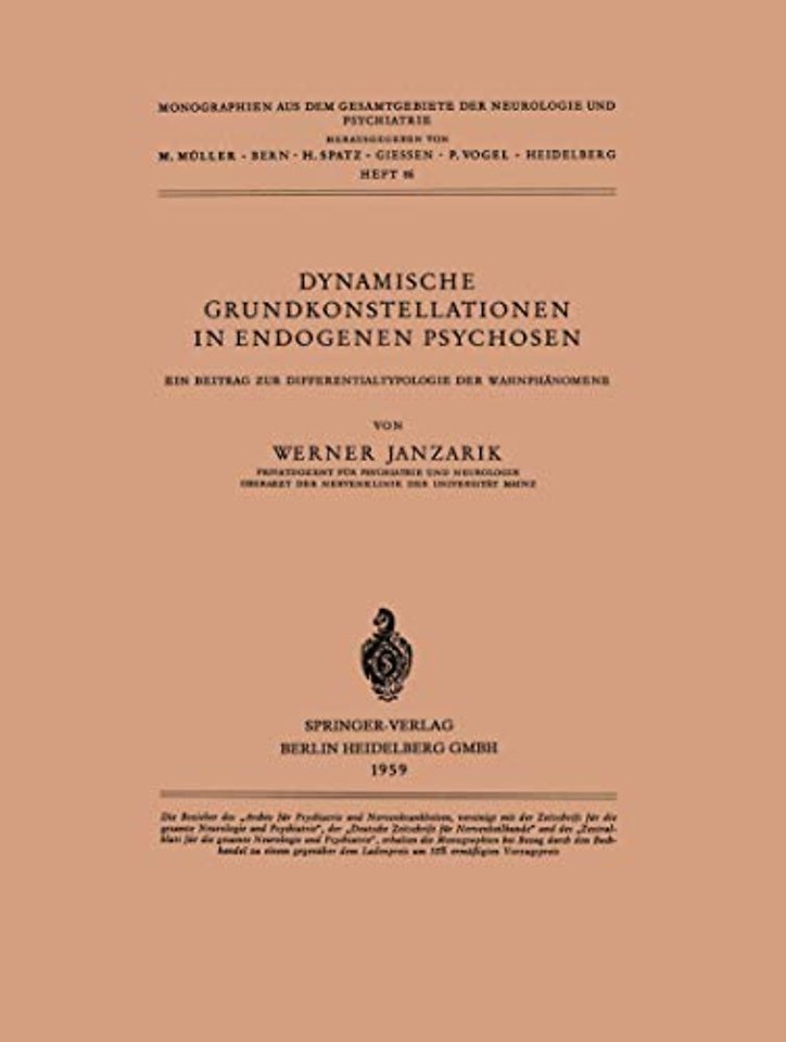 I. Die nosologische Problematik der endogenen Psychosen in psychopathologischer Sicht.- II. Psychologische Voraussetzungen.- III. Die Einheitspsychose als psychopathologische Leitidee.- IV. Die dynamische Reduktion.- V. Die dynamische Expansion.- VI. Dynamische Bewegung als produktives Prinzip.- VII. Die dynamische Unstetigkeit.- VIII. Die dynamische Entleerung.- IX. Der klinische Aspekt dynamischer Grundkonstellationen.- Schrifttum.- Namenverzeichnis.