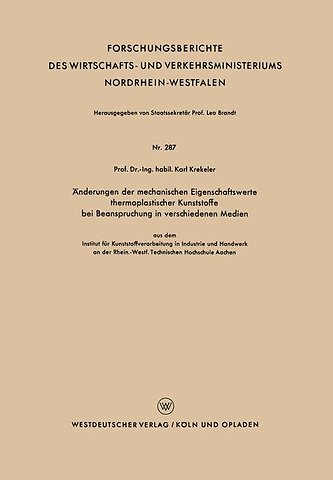 Gliederung.- I. Einführung in die Versuchsaufgabe.- II. Versuchsmaterial und ermittelte Kenngrößen.- III. Versuchseinrichtungen und Maschinen.- IV. Versuchsdurchführung.- V. Auswertung der Messungen.- VI. Versuchsauswertung.- 1. Einfluß der Lagerung in den Medien auf die Festigkeit der Schweißstäbe.- 2. Einfluß der Lagerung in den Medien auf die Quellung der Schweißstäbe.- 3. Einfluß der Lagerung in den Medien auf die beim Zerreißen auftretende bleibende Fließdehnung.- 4. Einfluß der Lagerung in den Medien auf die Färbung der Proben.- VII. Zusammenfassung und Beurteilung der Versuchsergebnisse.- VIII. Protokolle.