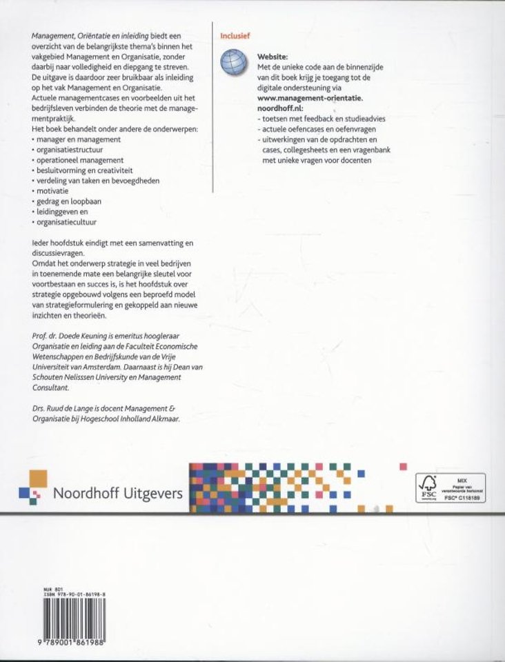 Op www.management-orientatie.noordhoff.nl vinden studenten onder andere digitale oefentoetsen met feedback en studieadvies en actuele oefencases en oefenvragen. Voor docenten zijn er uitwerkingen van de vragen en opdrachten en collegesheets. Docenten kunnen ook gebruikmaken van Toets-op-maat.