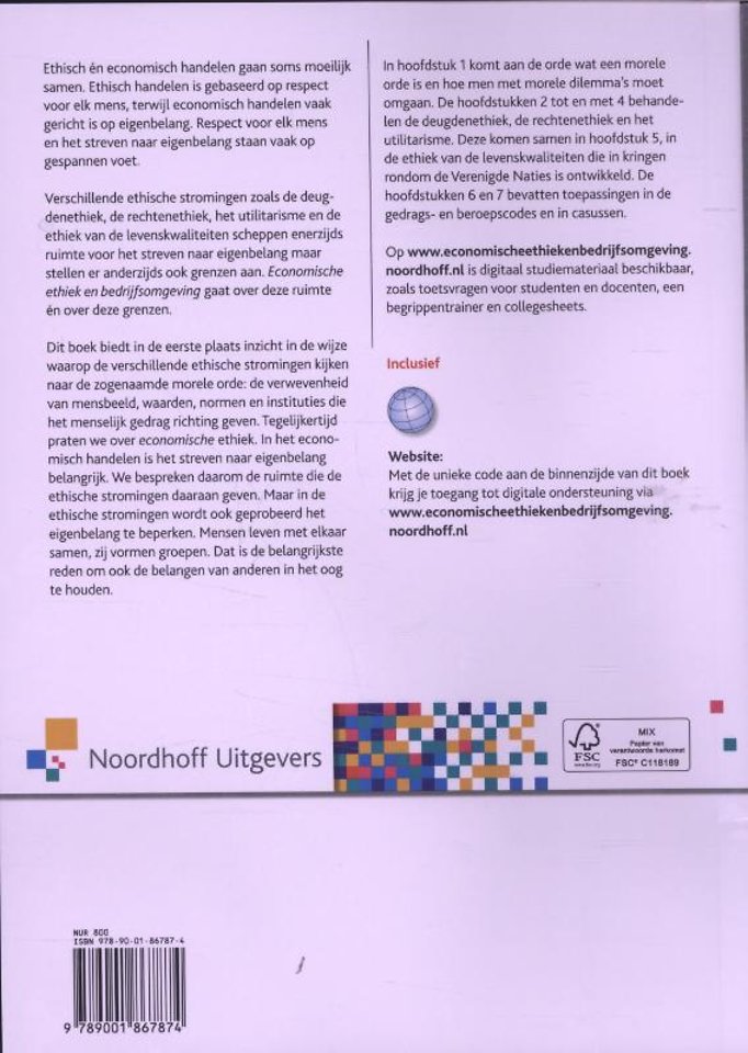 Verschillende ethische stromingen zoals de deugdenethiek, de rechtenethiek, het utilitarisme en de ethiek van de levenskwaliteiten scheppen enerzijds ruimte voor het streven naar eigenbelang maar stellen er anderzijds ook grenzen aan. 'Economische ethiek en bedrijfsomgeving' gaat over deze ruimte en over deze grenzen.