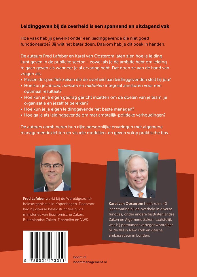 De auteurs Fred Lafeber en Karel van Oosterom laten zien hoe je leiding kunt geven in de publieke sector - zowel als je de ambitie hebt om leiding te gaan geven als wanneer je al ervaring hebt. Dat doen ze aan de hand van vragen als: