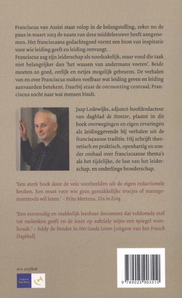 Meer over Jaap LodewijksFranciscus van Assisi staat volop in de belangstelling, zeker nu de paus in maart 2013 de naam van deze middeleeuwer heeft aangenomen. Het franciscaans gedachtegoed vormt een bron van inspiratie voor wie leiding geeft en leiding ontvangt.