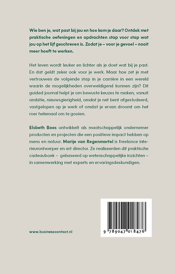 Hoe zet je die volgende stap in een wereld waarin de mogelijkheden overweldigend kunnen zijn? Wie ben je, wat past bij jou en hoe kom je daar? Dit guided journal helpt je stap voor stap werk te vinden dat je op het lijf geschreven is. Zodat je – voor je gevoel – nooit meer hoeft te werken.