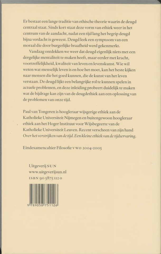 Vandaag ontdekken we weer dat deugd eigenlijk niets met een dergelijke mentaliteit te maken heeft, maar eerder met kracht, voortreffelijkheid, kwaliteit van leven en levenskunst. Wie wil weten wat menselijk leven is en hoe het moet, kan het beste kijken naar mensen die het goed kunnen, die de kunst van het leven verstaan. De deugd lijkt een belangrijke rol te kunnen (gaan) spelen in actuele problemen, en deze inleiding probeert duidelijk te maken wat de bijdrage kan zijn van de deugdethiek aan een oplossing van de problemen van onze tijd.