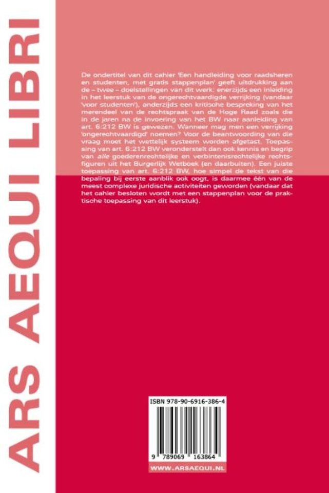 De ondertitel van dit Ars Aequi Privaatrecht cahier ‘Een handleiding voor raadsheren en studenten, met gratis stappenplan’ geeft uitdrukking aan de – twee – doelstellingen van dit werk: enerzijds een inleiding in het leerstuk van de ongerechtvaardigde verrijking (vandaar ‘voor studenten’), anderzijds een kritische bespreking van het merendeel van de rechtspraak van de Hoge Raad zoals die in de jaren na de invoering van het BW naar aanleiding van art. 6:212 BW is gewezen.