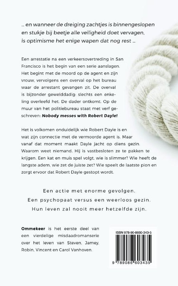 Ommekeer is het eerste deel van een vierdelige misdaadromanserie over het leven van Steven, Jamey, Robin, Vincent en Carol Vanhoven.