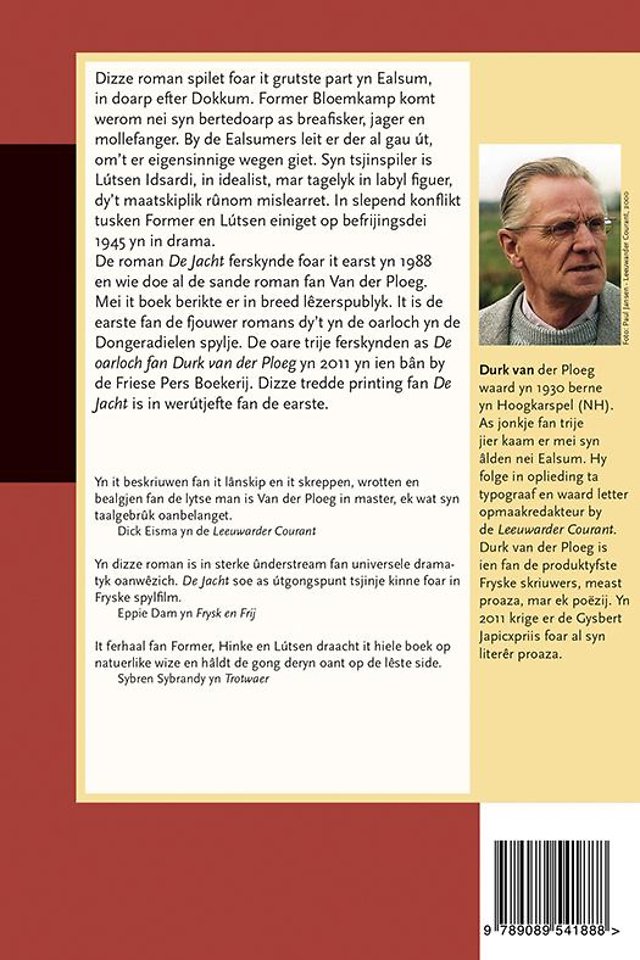 De roman De Jacht ferskynde foar it earst yn 1988 en wie doe al de sande roman fan Van der Ploeg. Mei it boek berikte er in breed lêzerspublyk. It is de earste fan de fjouwer romans dy't yn de oarloch yn de Dongeradielen spylje. De oare trije ferskynden as De oarloch fan Durk van der Ploeg yn 2011 yn ien bân by de Friese Pers Boekerij. Dizze tredde printing fan De Jacht is in werútjefte fan de earste.