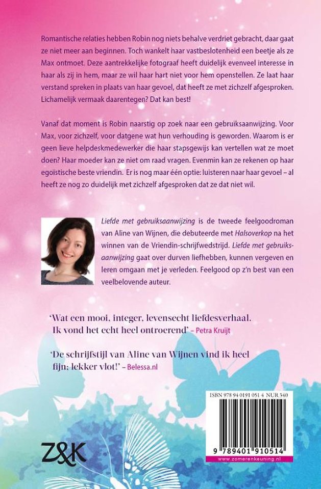 Mannen! Werden ze maar geleverd met een handleiding. Of een lieve helpdeskmedewerker. Of íéts. Aline van Wijnen beschrijft in Liefde met gebruiksaanwijzing op hilarische wijze hoe lastig de tweeëndertigjarige Robin het vindt om haar weg te vinden in haar werk, en vooral in de liefde. Want hoe leuk haar vlam Max ook is, hij is ook best wel ingewikkeld. Aline van Wijnen, die na het winnen van de Vriendin-schrijfwedstrijd debuteerde met Halsoverkop, brengt met Liefde met gebruiksaanwijzing opnieuw een heerlijke feelgoodroman.