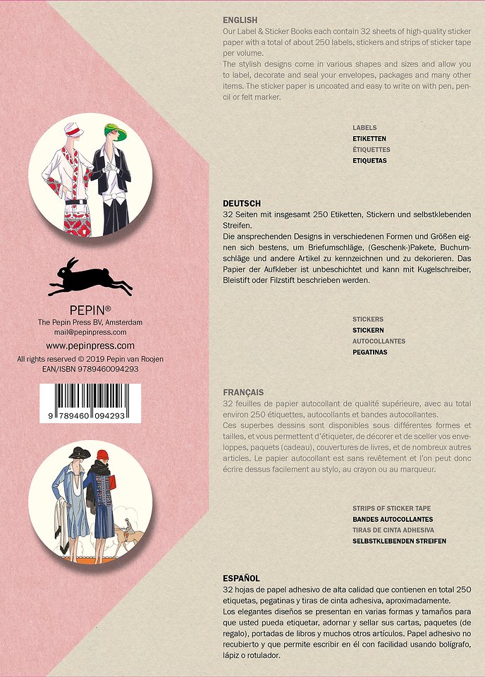 Our Label & Sticker Books each contain 32 sheets of high-quality sticker paper with a total of about 250 labels, stickers and and strips of sticker tape per volume. The stylish designs come in various shapes and sizes and allow you to label, decorate and seal your envelopes, packages and many other items. The sticker paper is uncoated and easy to write on with pen, pencil or felt marker.