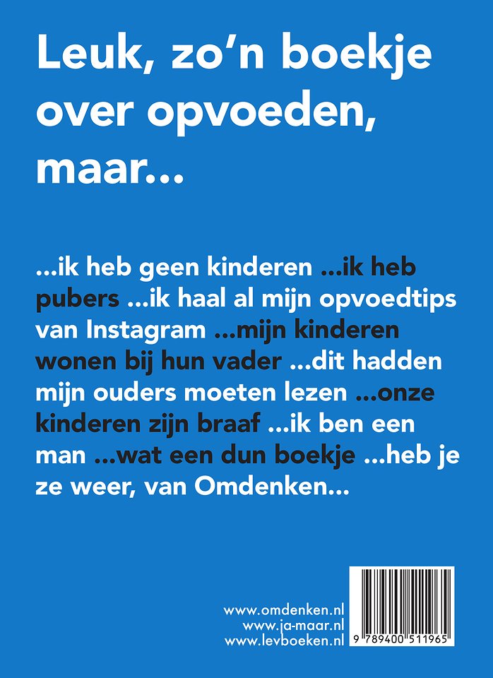 ...ik heb geen kinderen ...ik heb pubers ...ik haal al mijn opvoedtips van Instagram ...mijn kinderen wonen bij hun vader ...dit hadden mijn ouders moeten lezen ...onze kinderen zijn braaf ...ik ben een man ...wat een dun boekje ...heb je ze weer, van Omdenken...